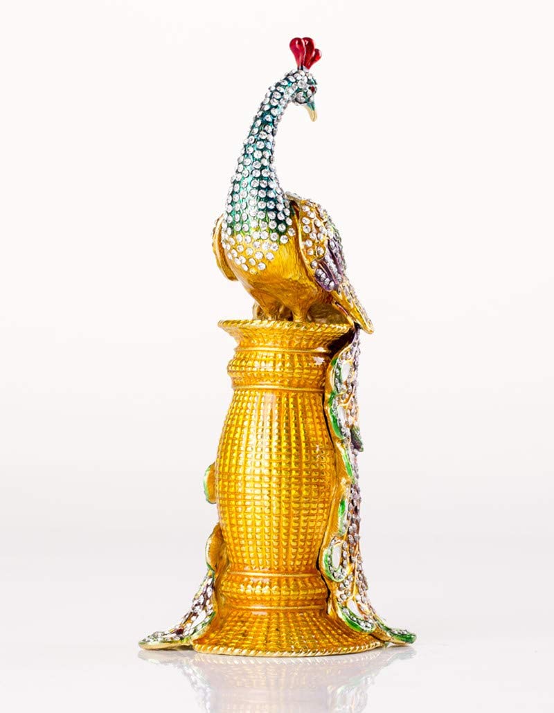 Hand Painted Peacock Figurine Enamel Hinged Jewelry Trinket Box Unique Gift with MUCH CRYSTALS For Home Decor