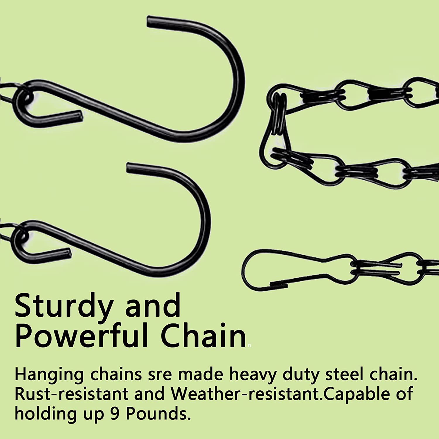 - 👍Wide Application - Endless uses of these chain hooks. Decorate your outdoor or indoor space by christmas lights decorations、christmas hanging basket, bird feeders, bird houses, plant baskets, flower pots, lanterns, wind chimes, shooting targets, isle markers and more. Tips:Each of our chains has 2pcs S hooks, which make the suspension stronger and safer.