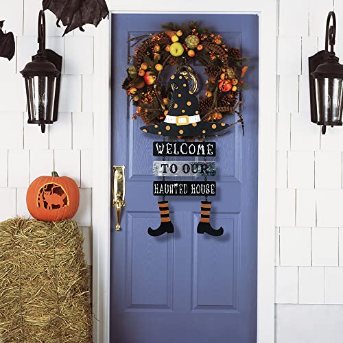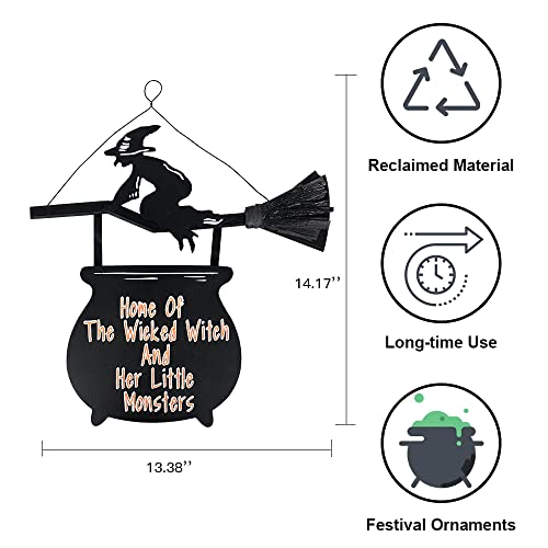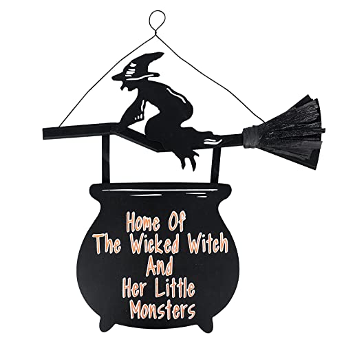 - 👻【HALLOWEEN DECORATIONS FOR HOME】 Celebrating the Halloween with Fun Halloween Decorations. This large size Witch Riding a broom hanging sign could be an ideal Halloween decor. The witch Riding a broom elements and the text on the wooden sign perfectly convey cheer and funny for the atmosphere of the Halloween.