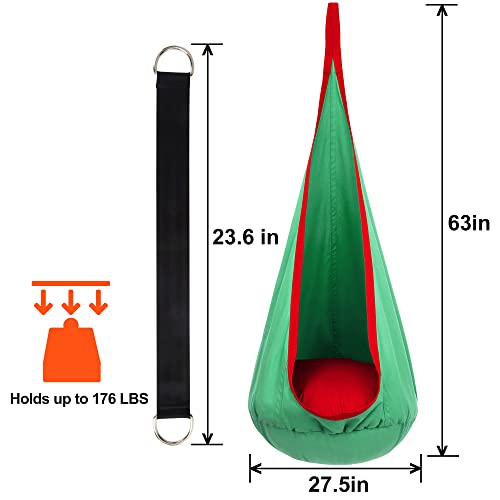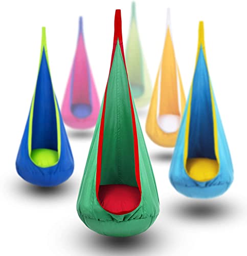 - Kids pod swing seat, which not only helps to cultivate children’s sense of balance and physical senses, but also provides children with a fun play space and a quiet and comfortable place to rest.(Suitable for children between 3-9 years old. )