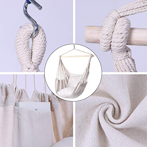 - Comfortable and Safe: The cotton rope hammock chair will not lose the cotton thread, it has the comfort of a soft sponge. You can sit or lie down. Anytime, anywhere can easily move, allowing you to fully enjoy the comfort and relax