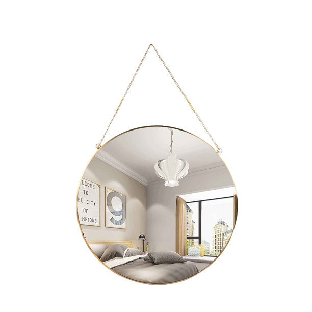 Hanging Wall Circle Mirror Decor Gold Round Mirror w/ Chain for Bathroom 11.8"