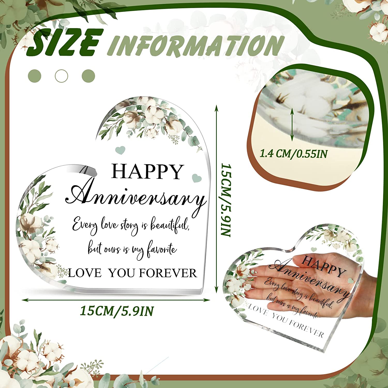 - Freestanding Anniversary Wedding Gifts: due to certain thickness, these happy anniversary gifts are designed with flat bottoms so that they can freely stand upright on many flat surfaces, tabletops or fireplaces without supporting, no auxiliary tools are required, you can put this anniversary gifts on most places conveniently