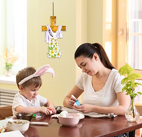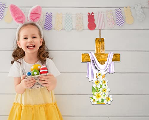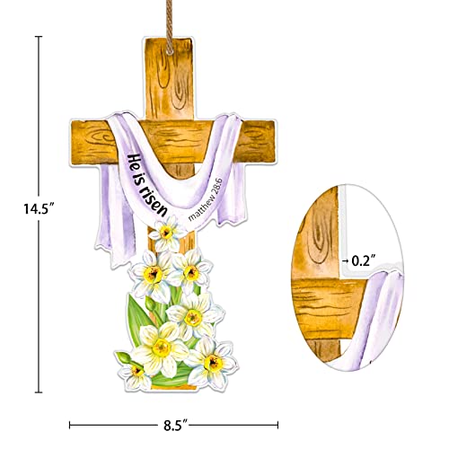 He is Risen Door Sign 8.5"x14.5" Religious Easter Cross Hanger Door Spring Decor