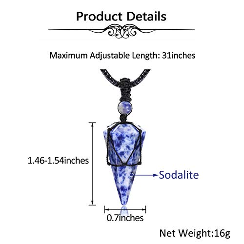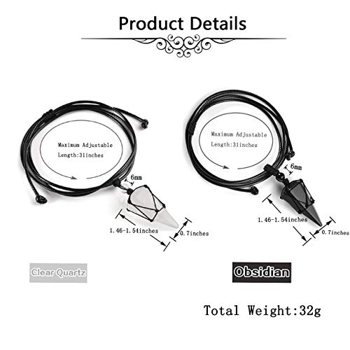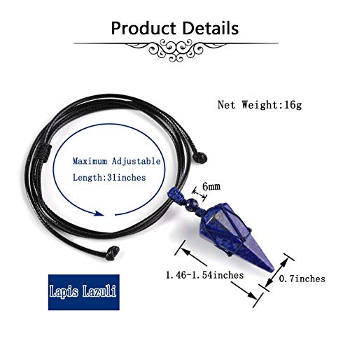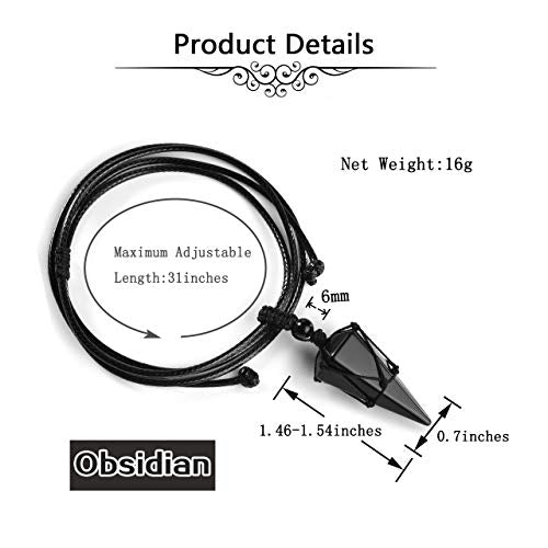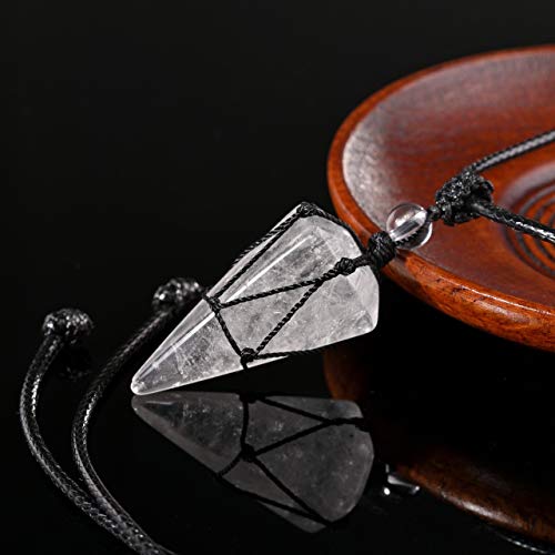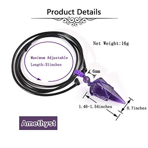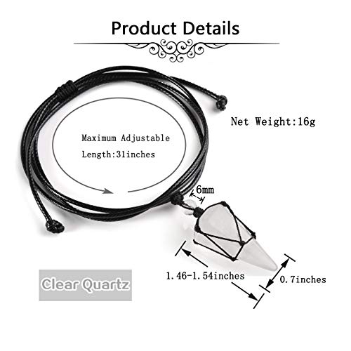 - 6 Facet Reiki Healing Crystal Stone Pointed Pendant Necklaces Adjustable Natural Gemstone Necklace, a good reiki quartz jewelry for both women and men as great gifts for birthday, Christmas, Mother’s Day, Father’s Day, Valentine’s Day, anniversary and etc.