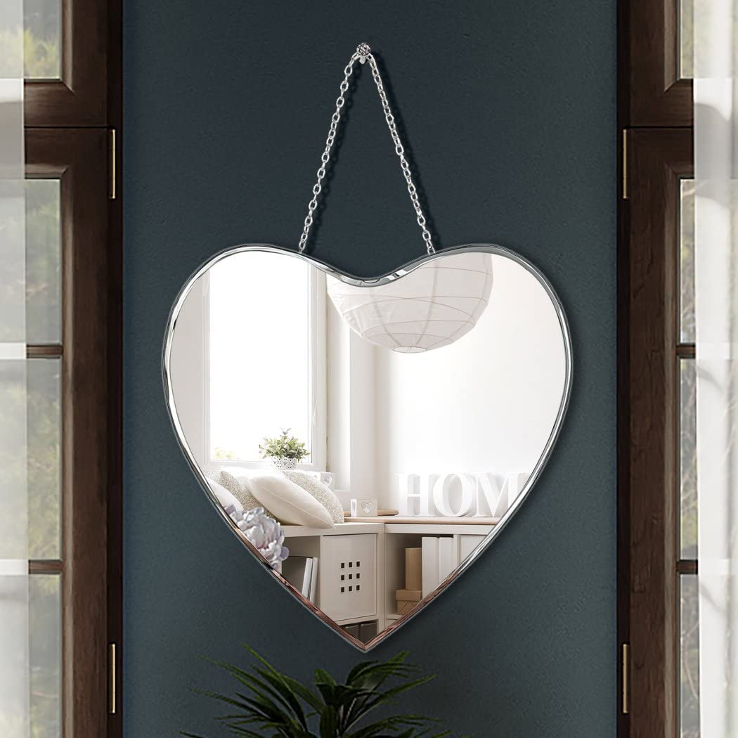 Heart Shaped Mirror with Iron Chain for Wall Decor 12x12 inch Real Glass Frameless