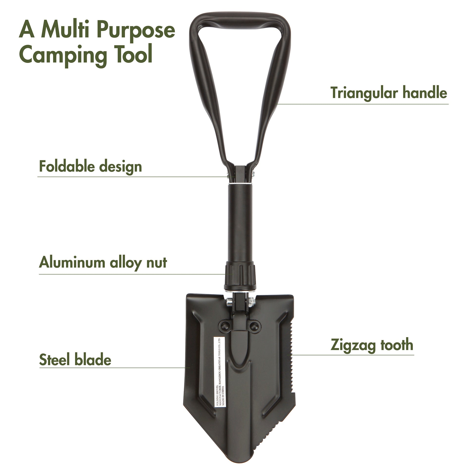 Stay prepared with the Folding Shovel. Made with a heavy-duty steel construction, offers strength and durability in outdoor activities. This steel shovel features a serrated edge that makes it easier to break through hard surfaces, such as tough dirt. The folding shovel can be opened manually easily. It folds open and has a locking mechanism to keep it shut for easy storage after use. Use this to dig your car out of snow or clear your way out when you are hiking. Be sure to include the Ozark Trail Folding Shovel to your emergency supply kit or survival gear to get you prepared whenever you are in need in your every outdoor adventure. It even comes in handy for heavy yard work. The Ozark Trail Folding Shovel is highly versatile due to its steel construction and sharp edge. Black color makes it fashion. " Ozark Trail Heavy Duty Steel Folding Shovel, Black *- Heavy-duty steel construction *- Serreated edge help break the hard surfaces *- Folding function provides compact packing *- Size: 22.64 x 8.27 inch *- Locking mechanism for easy and safe storage *- Ozark trail shovel is highly versatile *- Versatile in many conditions *- Age Group: Adults *- Gender: Unisex *- Assembled product size: 11.5in x 5.9in x 2.4in *- Category: Outdoors & sports *- Model# 4803"