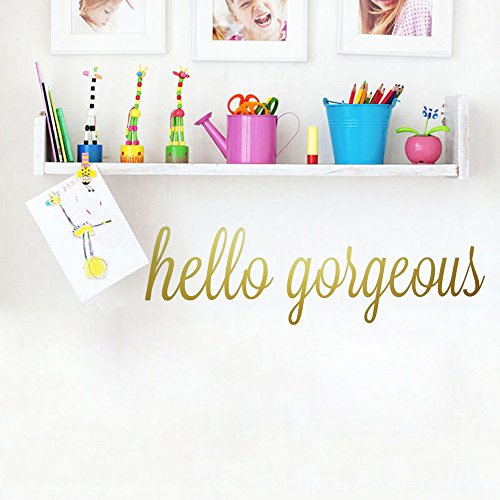 - Beautiful gold hello gorgeous mirror stickers:Great gold wall decor for home, bedroom decor, women or girls bedroom,bathroom, office,classroom decoration