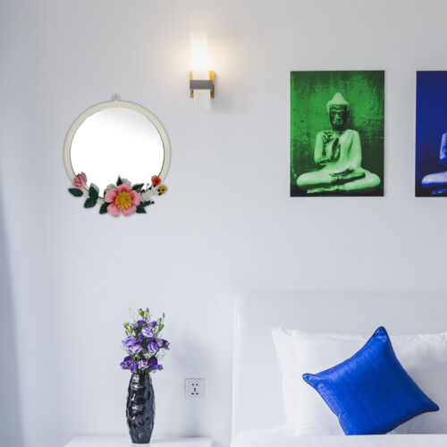HANGING: This handcrafted Decoration floral wall mirror comes with a round ring on the top for hanging.