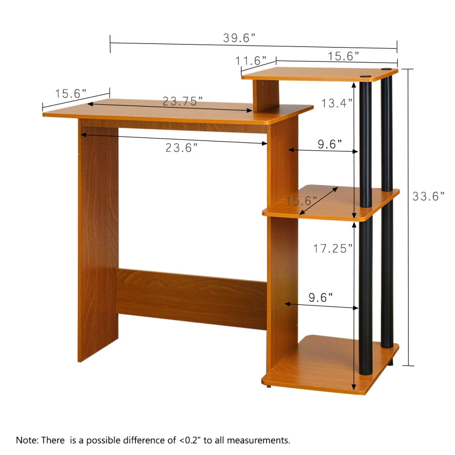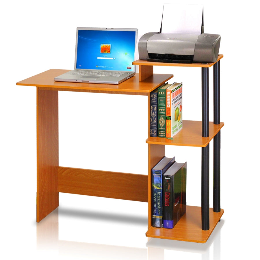 Get your work down at home and in style with this Furinno Efficient Home Laptop desk. A perfect blend of form and function, this piece brings ample storage space and classic appeal to your space. The sleek finish and clean-lined design let this piece fit in with a variety of settings. It also features a rectangular tabletop and three open shelves for all your storage needs. Try setting this desk at the center of your home study to give your room a classic aesthetic, then build on the look by rolling out a simple gray rug and a matching black bookcase. Next, dot the walls with framed botanical art, then hang a simple chandelier overhead to cast a warm glow over late-night projects and early morning reading. *- Compact Stylish Design: Compact size computer desk with side shelves suitable for small rooms *- Quality Material: Manufactured from high-quality durable composite wood and plastic tubes *- Improved Safety Feature: Rounded corner reduces risks of injury *- Furinno Fits: Fits in your space fits on your budget *- Product Dimensions: 39.6 (W) x 33.6 (H) x 15.6 (D) inches *- Desktop Dimensions: 28.6 (W) x 29 (H) x 15.6 (D) inches
