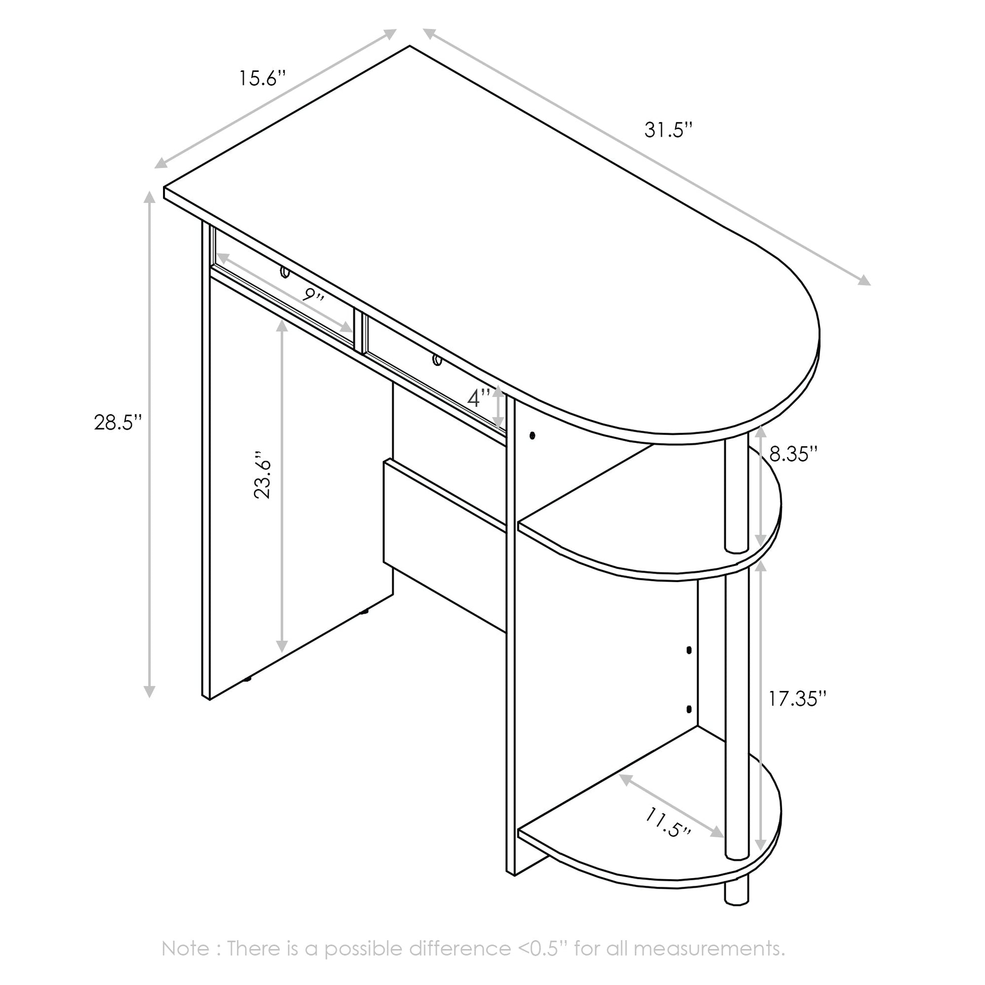 Designed to fit your space, your style, and fit your budget. It is easily assembled and fits into any of your home decors. The medium-density composite wood is manufactured in Malaysia and complies with the green rules of production. There is no foul smell, durable and the material is the most stable amongst the medium density composite woods. The PVC tube is made from recycled plastic and is tested for its durability. The non-woven bin simply adds a sweet accent to the whole unit. A simple attitude towards lifestyle is reflected directly in the design of Furinno Furniture, creating a trend of simply nature. All the products are produced and assembled 100-percent in Malaysia with 95% - 100% recycled materials. *- Model Number: 11193 Go Green Home Laptop Notebook Computer Desk/Table *- Compact and stylish design. Compact size computer desk with side shelves suitable for small rooms *- Manufactured from high-quality durable composite wood and plastic tubes. *- Comes with non-woven bin drawers for storage of small items *- Sturdy and firm on a flat surface *- Recommended maximum weight capacity of 20 pounds on the tabletop *- Care Instructions: Wipe a clean with clean damped cloth. Avoid using harsh chemicals *- Some assembly is required. Visual added in assembly instructions to help with better understanding. *- Product dimensions: 31.5 (W) x 28.5 (H) x 15.6 (D) inches. *- Pictures are for illustration purposes. All decor items are not included in this offer.
