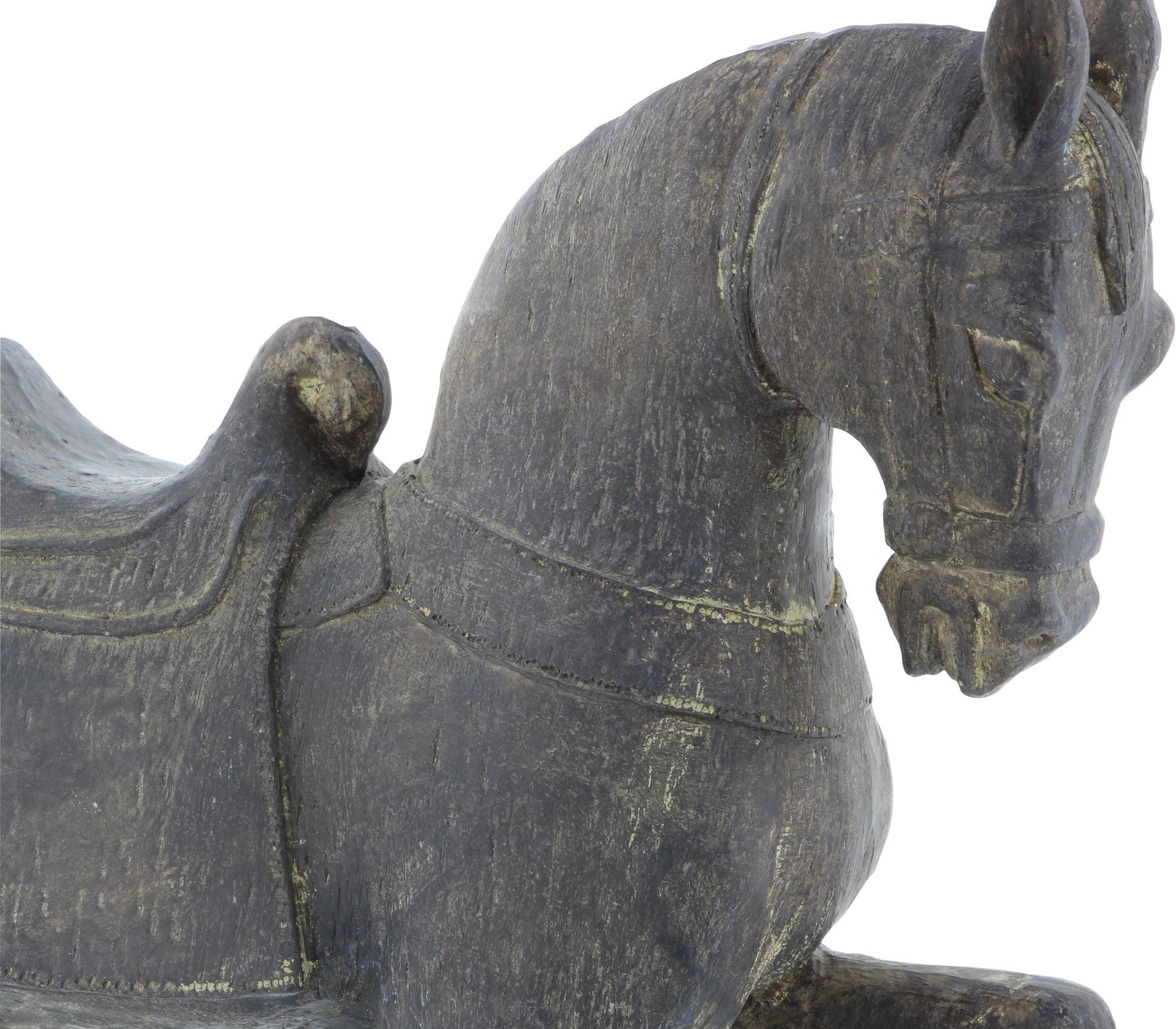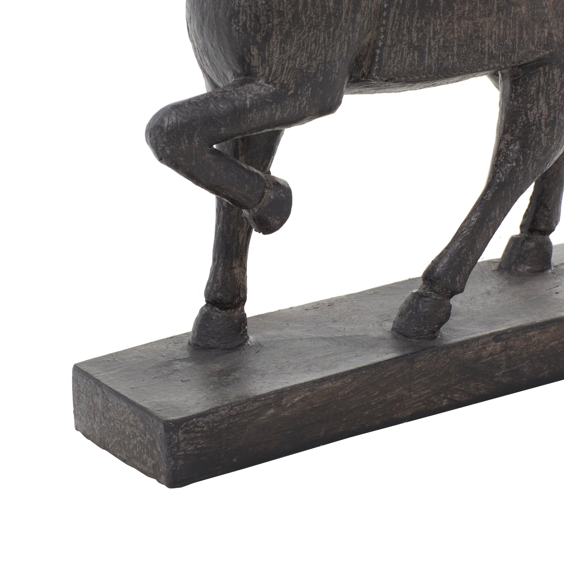 - Features: A horse shaped on a rectangular base, Wipe clean with a dry cloth, Each piece is molded from polystone and hand painted, with a polystone base