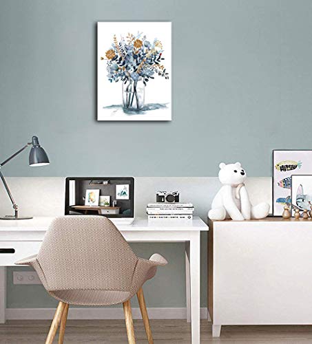 Indigo Flowers Watercolor Canvas Wall Art Decor Framed Ready to Hang
