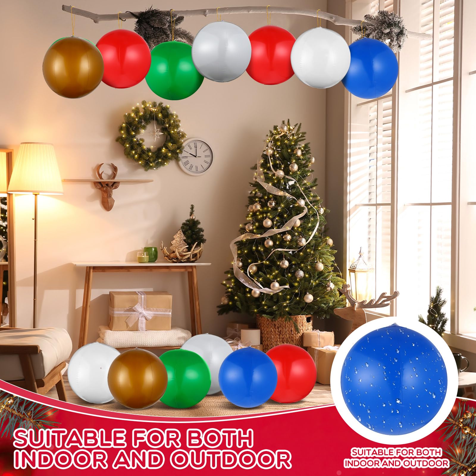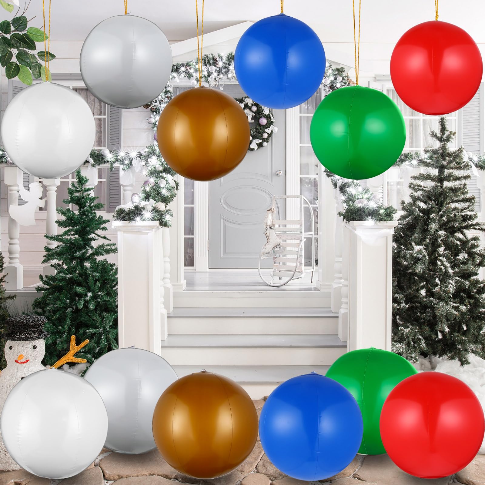 - Package Includes: there are 24 pieces of Christmas inflatable balls outdoor decorations in the package, coming with 6 different colors, including white, red, green, gold, silver, blue, 4 pieces per color, which allows you to choose as you like, and can make your places colorful, each ball is about 12 inches after inflating