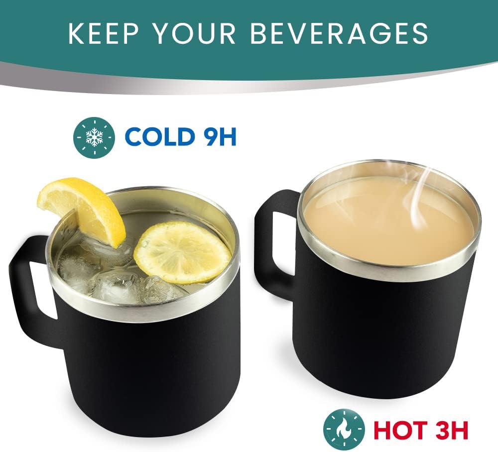 - DOUBLE-WALLED DESIGN- The high-quality stainless steel and the double-walled insulation design ensures beverage can stay hot for 0- 3 hours or cold up to 9 hours. Can be used for coffee, tea, juices.