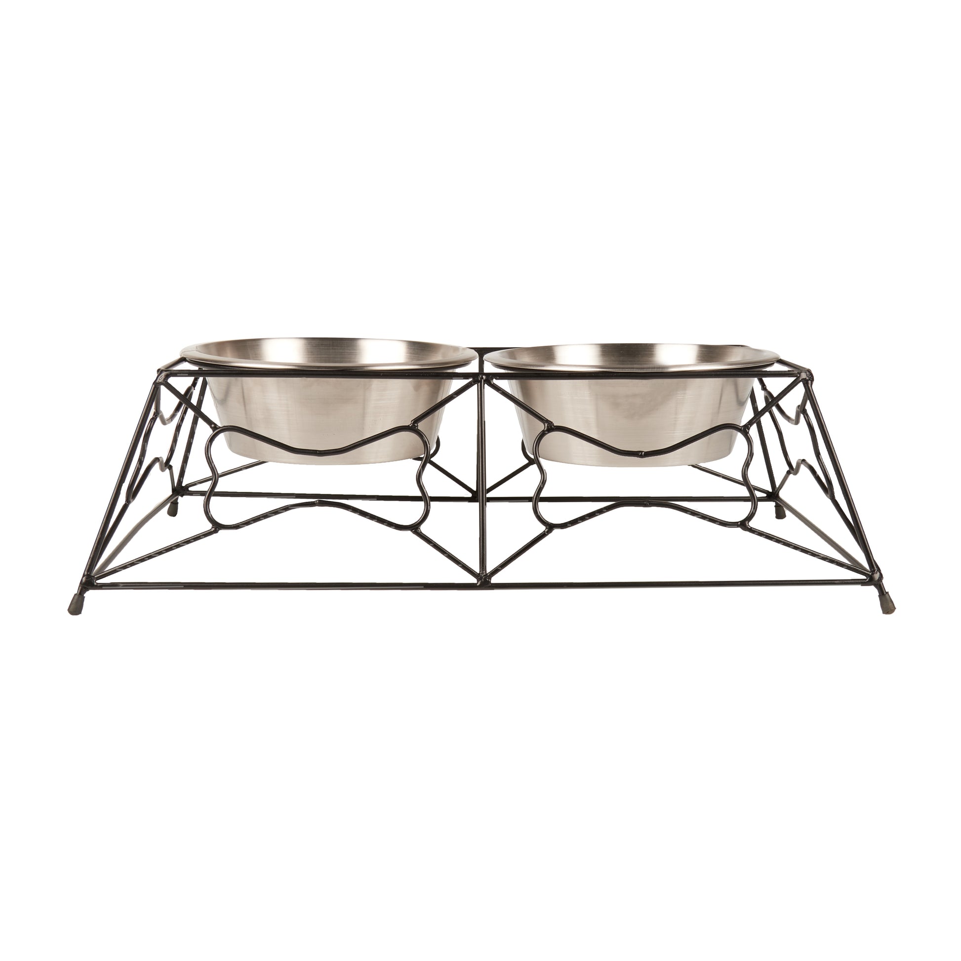 Iron Bone Elevated Pet Diner with Steel Bowls, Large, 54 fl oz.