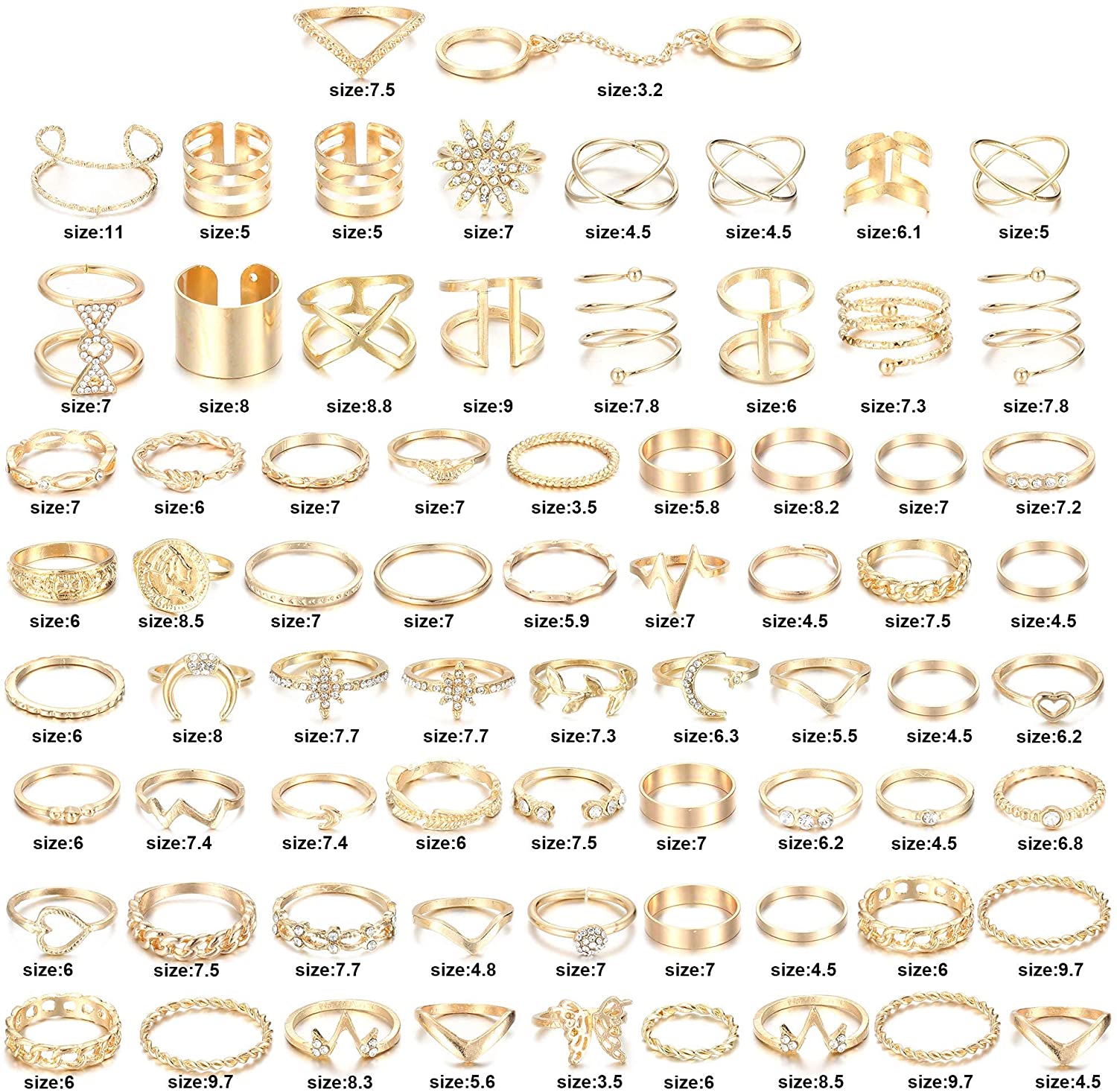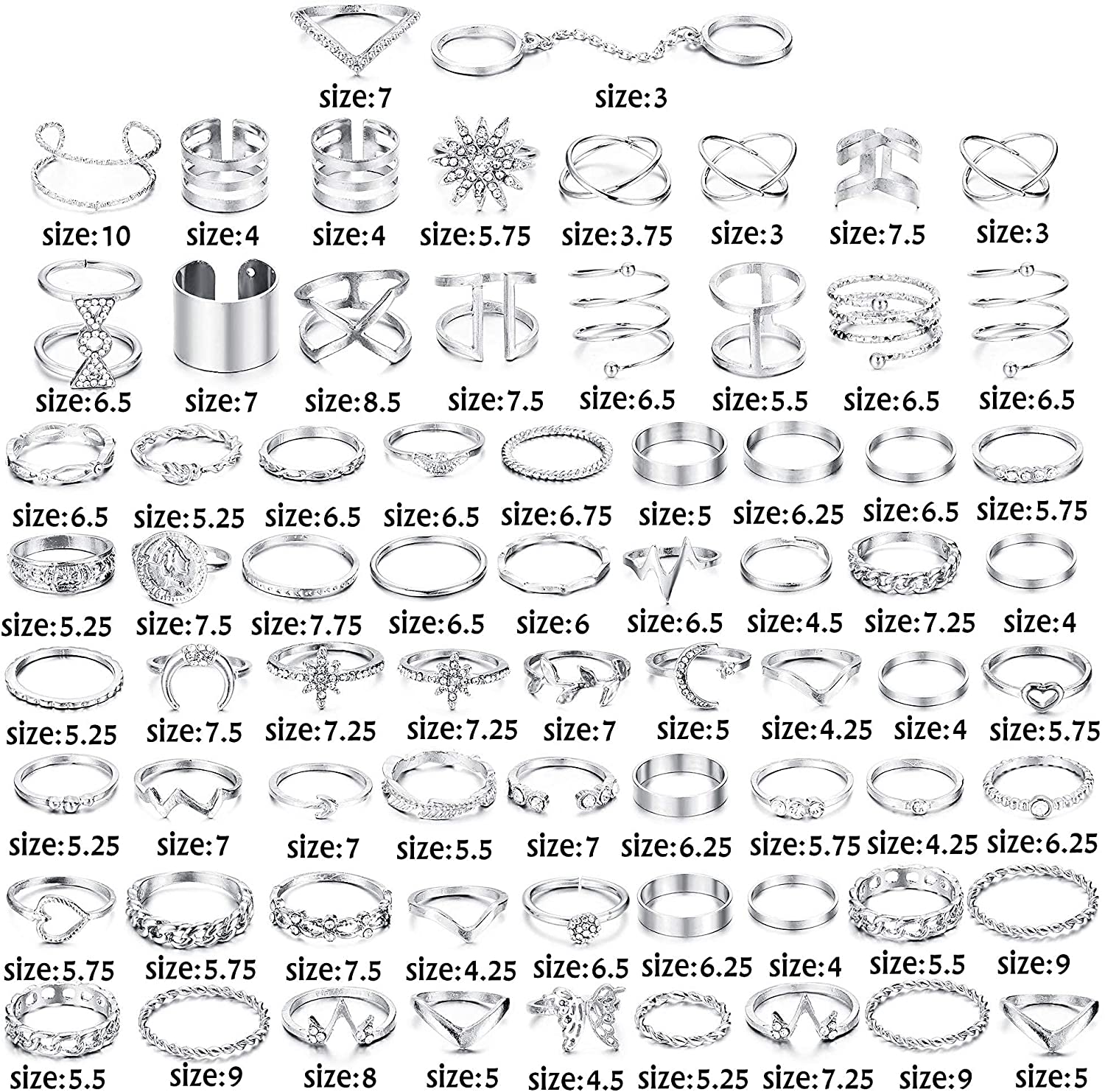 - 🌸 Size 🌸 Check the 6th Picture for Size Chart, The Midi Rings Size is about US 3.2-US 11, Perfect Fit Your Each Finger, You Can Use Them as Regular Rings Or Stack Them as Knuckle Rings, Stackale Rings, Joint Rings, Midi Rings, Finger Rings, Nail Rings and Toe Rings