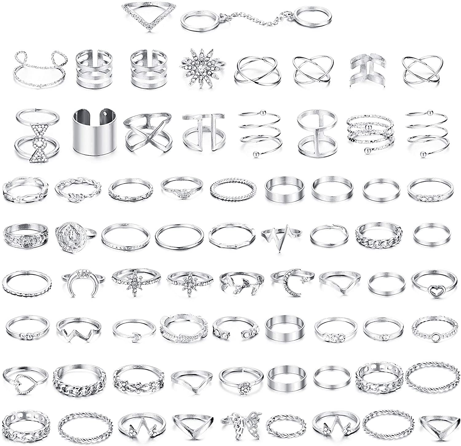 Jstyle 70PCS Knuckle Rings for Women Stackable Joint Midi Finger Ring Set