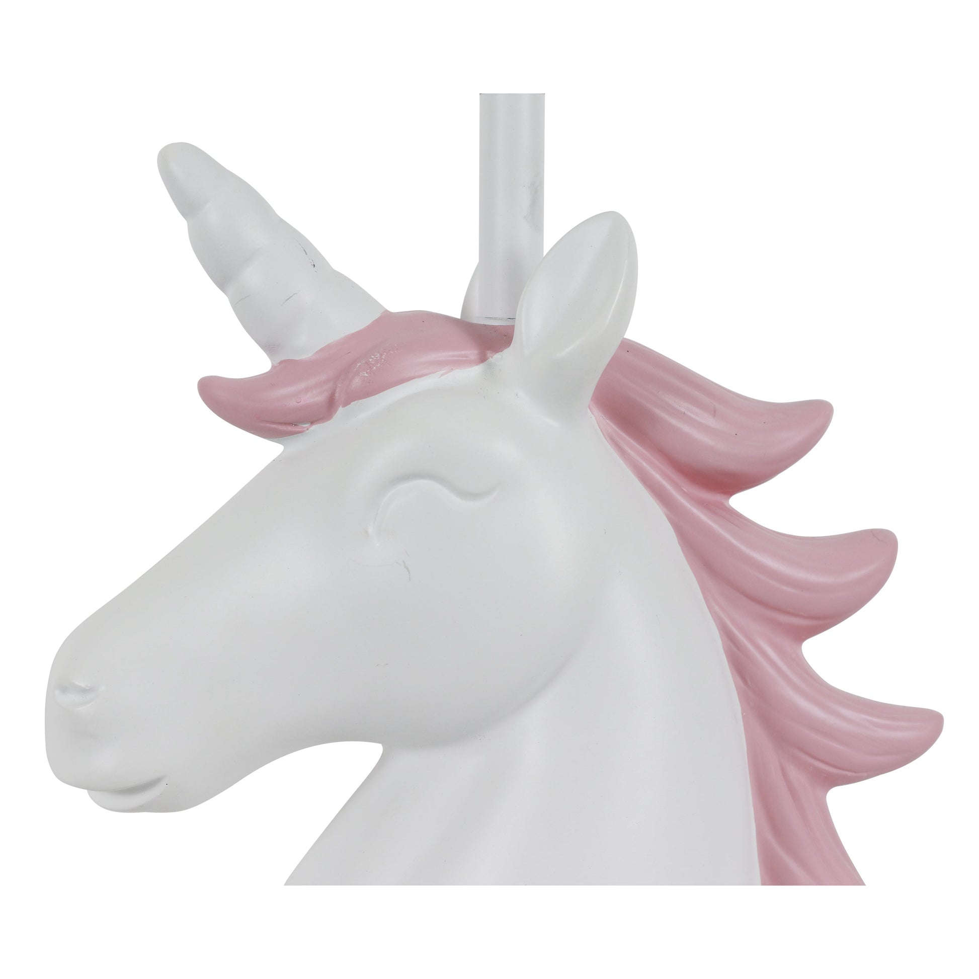 Let the your Table Lamp add a bit of whimsical flair to your space with a hint of fun! The playful structure, blended with the soft colors, allow you the opportunity to experiment with different decor themes and styles, whether it's in your child's bedroom or play area. The Your Zone Unicorn Poly Grab & Go Table Lamp will keep your space fresh and updated; with the structure of the unicorn's mane giving off the illusion of it blowing in the wind. The possibilities are endless and you are sure to find a space among your child's fun-filled fantasy-driven decor! Constructed of poly and measures: 15.5"H x 8"W x 8"D. Your Zone Kids Unicorn Poly Accent Table Lamp, White Finish *- Constructed of polyresin *- The unicorn's white finish with pink flowing mane creates a soft touch to an otherwise bold and boisterous table lamp *- Features an on/off rotary switch for easy functionality *- Requires (1) 60 watt bulb, not included *- Measures: 15.5" x 8" x 8"