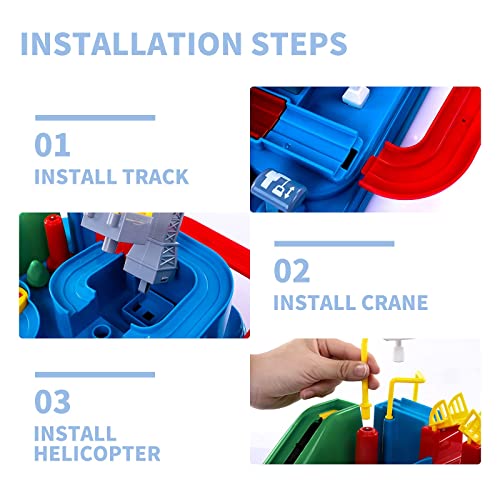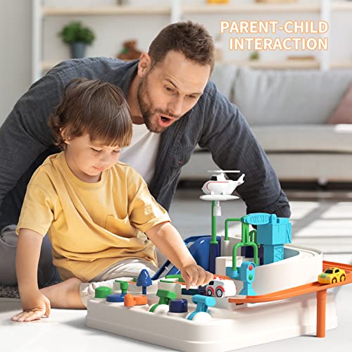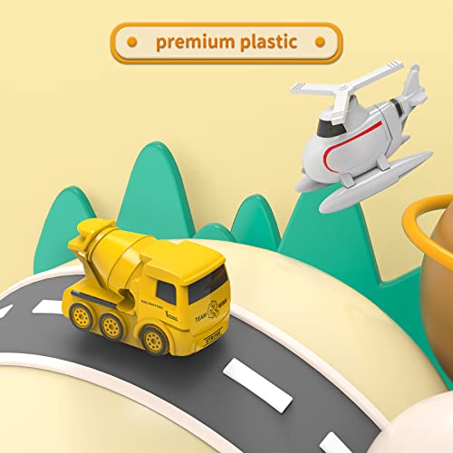 - CHILD-FRIENDLY MATERIALS - This track table vehicle set is made of high-quality and non-toxic ABS materials, has passed physical and mechanical tests, meets toy standards. Ideal toddler toys for age 3-4. Round edge and smooth surface design let you no longer worry about children will get hurt.