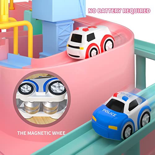 - NO BATTERY REQUIRED - Guide the toy for Kids 3-5 Years Old through the obstacle and pass each challenge, let children immerse themselves in the world of transportation or car adventure. Built-in mechanical linkage track, inertial vehicle track, no battery required. The stable physical structure makes the product stronger and not easily damaged.