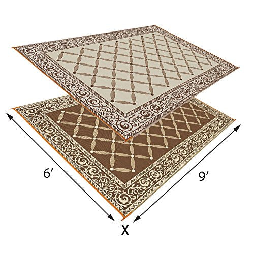 6'x 9' Reversible Mat Plastic Straw Area Rug (Brown/Beige)