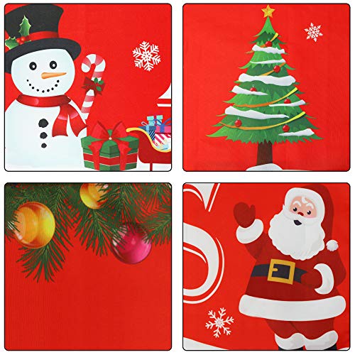 - UNIQUE DESIGN -- This Merry Christmas banner is the perfect centerpiece for your Christmas holiday decor. The "Merry Christmas" letters, Snowman, Sleigh, Christmas Tree, Santa, Christmas ball, snowflake are printed on the red polyester banner. Each element is completely detailed and decorated to coordinate with the christmas theme and decor, which will add great touch during your Christmas holiday.