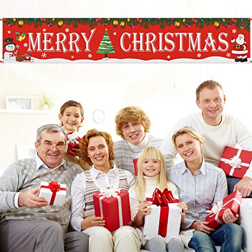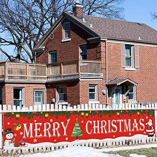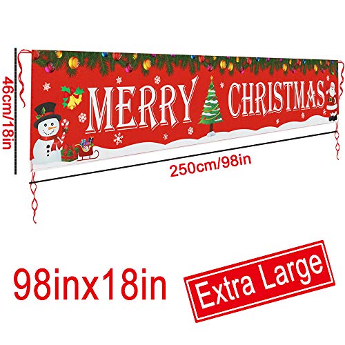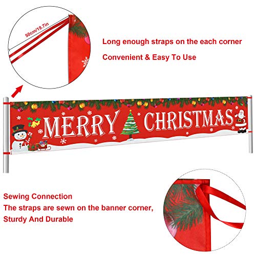 - LARGE MERRY CHRISTMAS BANNER -- The large Merry Christmas banner measures approx 8.2ft ×1.5ft, the straps on the corner are about 19.7", large and perfect size design makes it easy to decorate your party, hang the lovely Merry Christmas banner on your party for the perfect Christmas decorations.