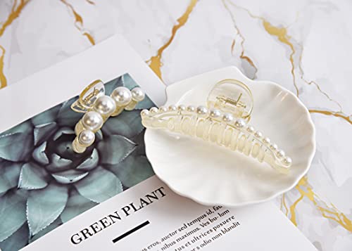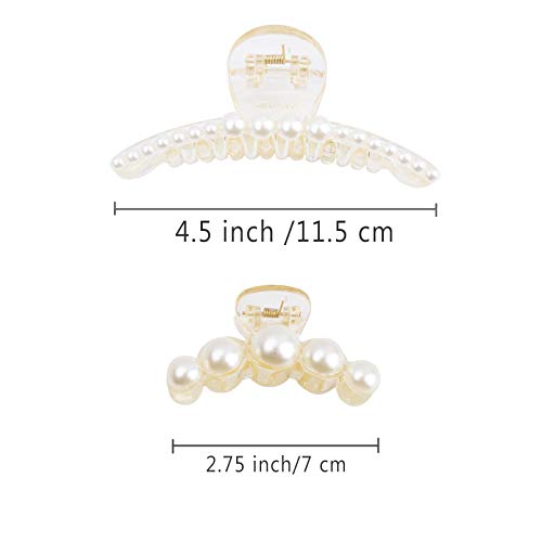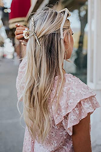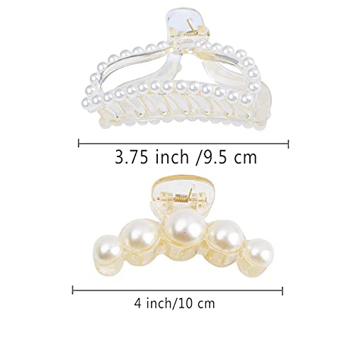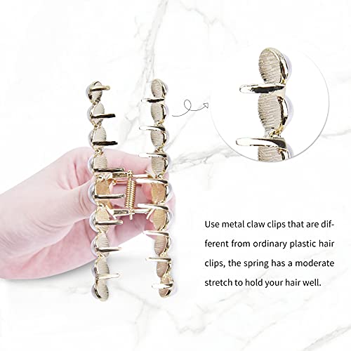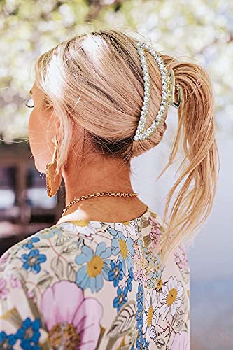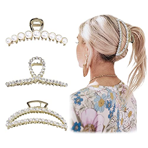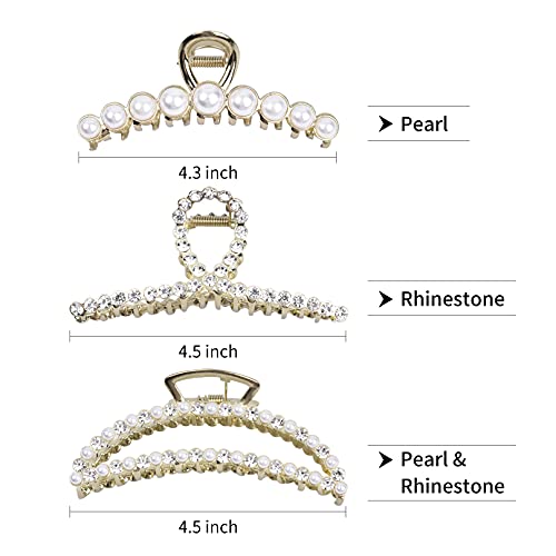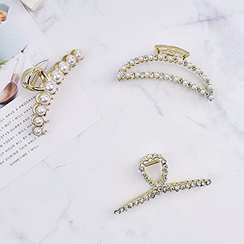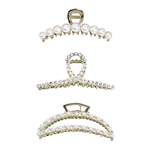 Large Metal Pearl Hair Claw Clips Gold Rhinestones for Women & Girls