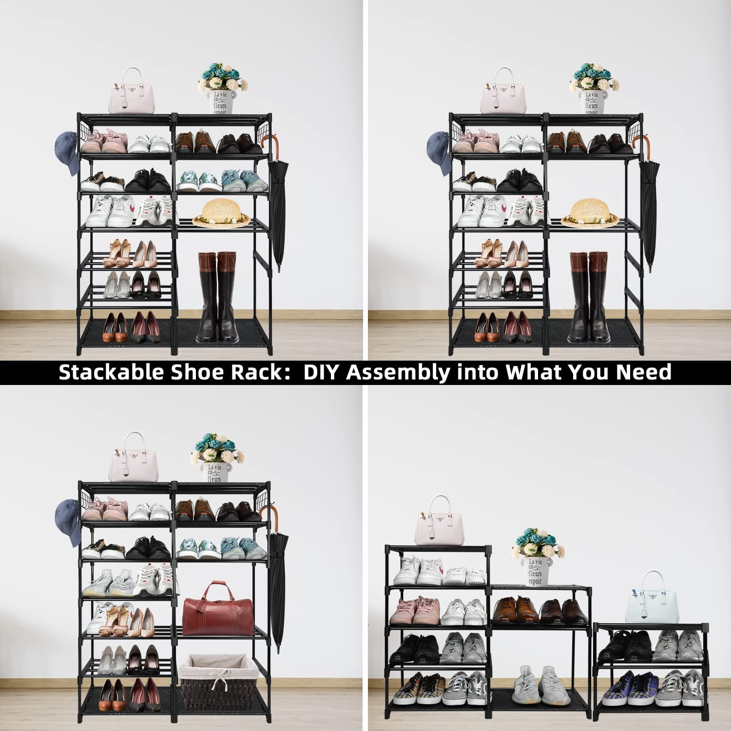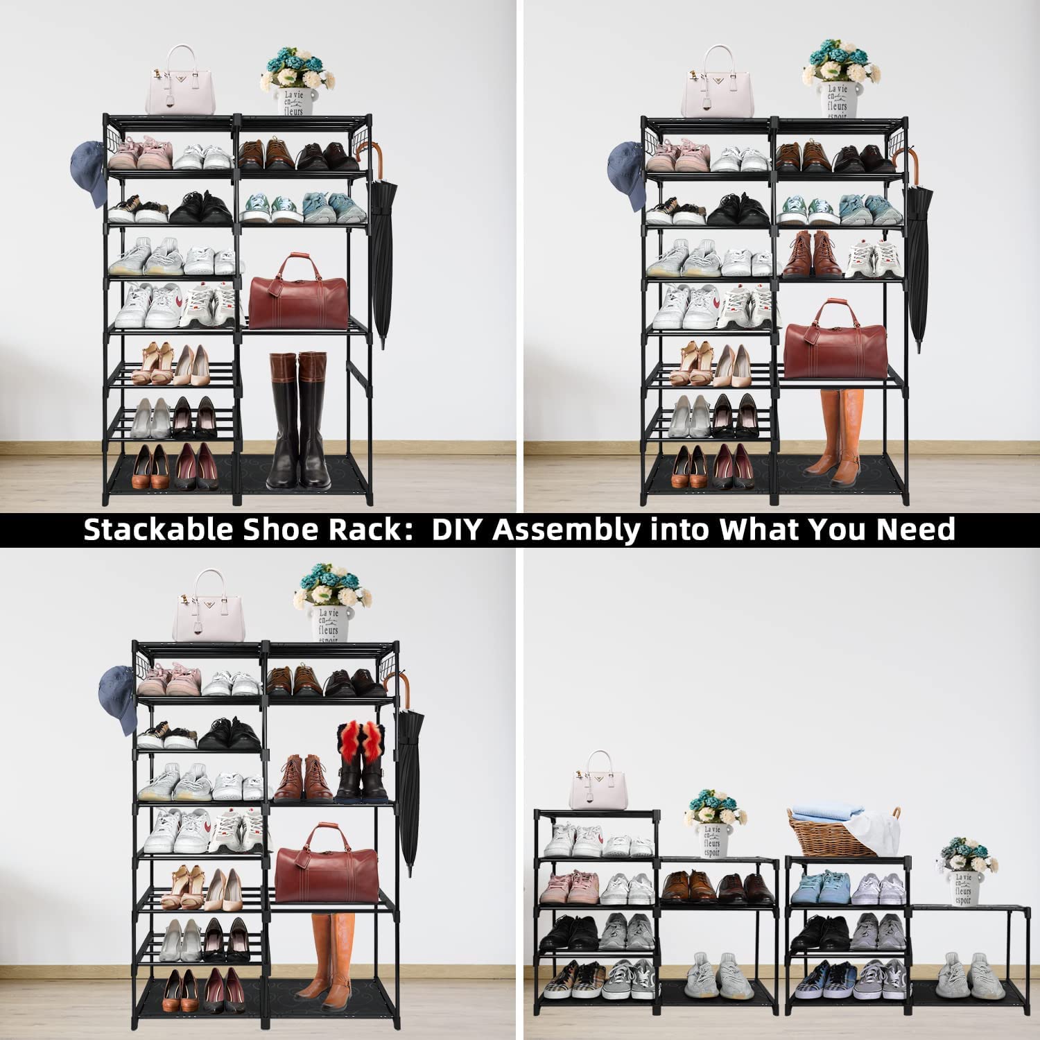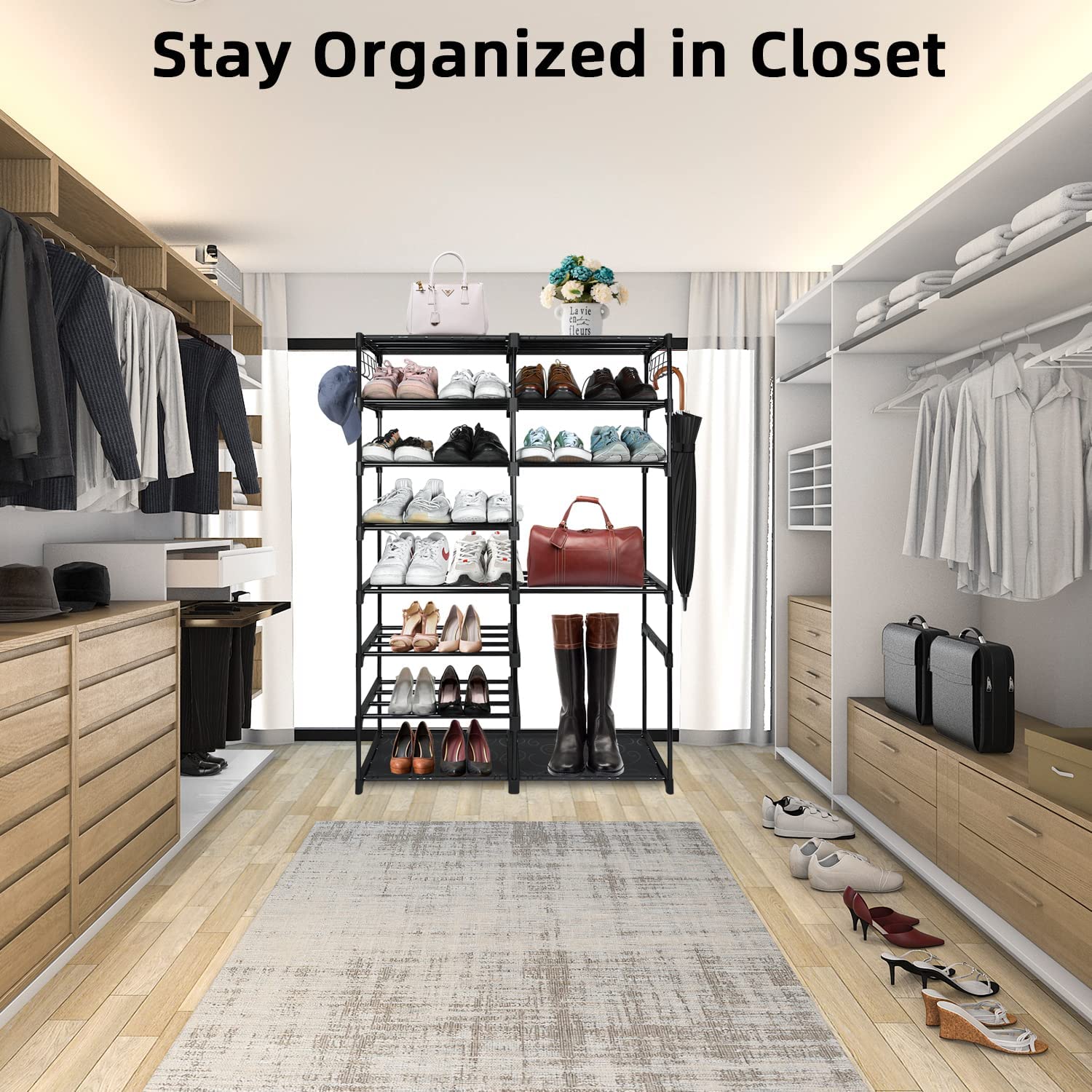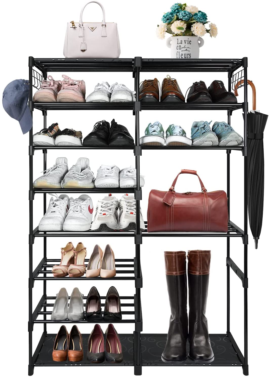Large Metal Shoe Rack, 50-55 Pairs w/ Hooks-Black