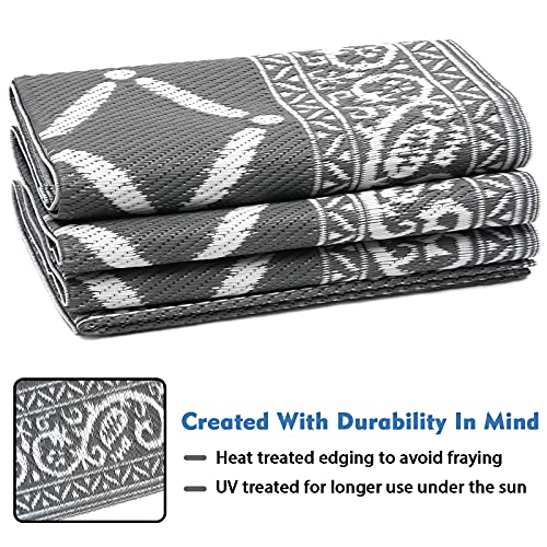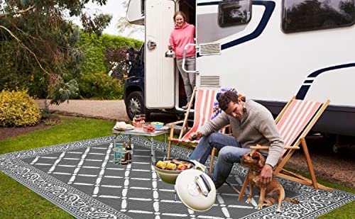 - Waterproof & Easy to clean: The Reversible RV Patio Mat is easy to clean; simply spray with water or sweep and air it dry for a restored appearance.