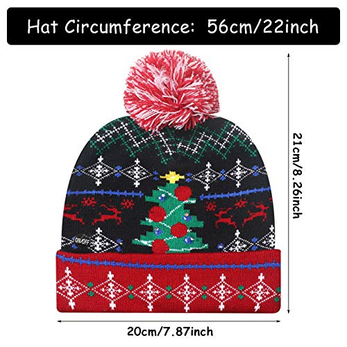 - Measurement: the LED Christmas hat measures approx. 20 x 21 cm/ 7.87 x 8.27 inches in width and height, with good elasticity, it can fit for most adults and children, our novelty unisex LED winter hats will fit your head snugly and won't make you feel too tight