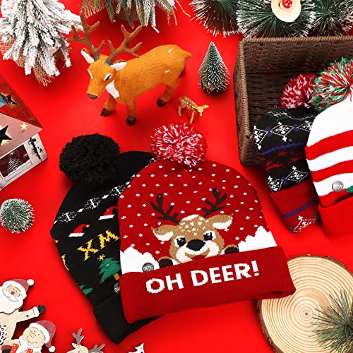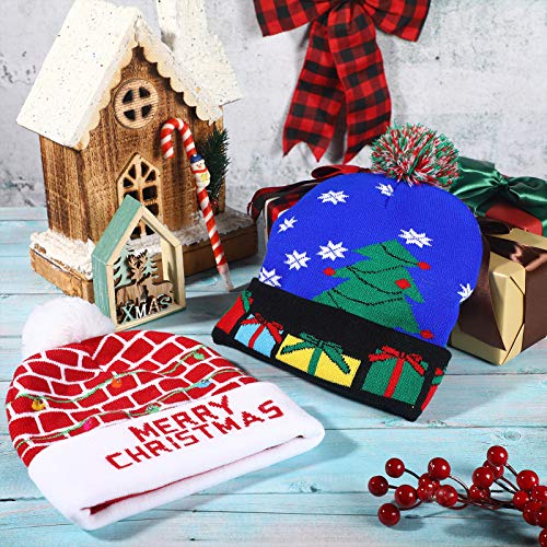 - What you will get: 6 piece of Christmas sweater hats with 6 colorful LED in different styles, enough quantity to meet your daily wearing and replacing needs, you can also share with your friends and families