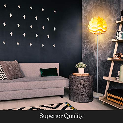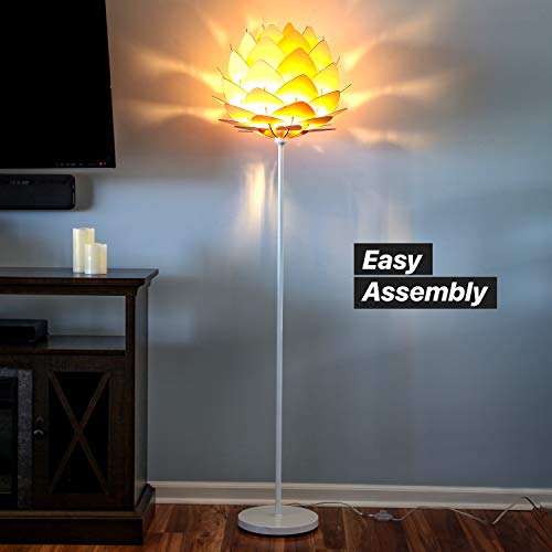 - Stylish Floor Lamp With Multi-Panel Wooden Shade: The Brightech Artichoke floor lamps offer a beautiful shade that will elevate your space while also being a main conversation piece. With wood touches that create an old-timey and unusual look, you’ll be surprised to find that it works great with contemporary décor trends such as mid-century, Scandinavian, and modern decoration styles. This lamp for living rooms has poles with white finishes to craft an inviting and warm atmosphere.