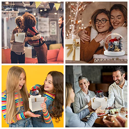 - [Flowers for Delivery]: The well-preserved rose flower box in the glass dome will have a beautiful gift box with a size of 6.3 inches * 6.3 inches * 6.3 inches Attach a beautiful card. a Real Rose encased in the most luxurious hand blown glass dome and wooden base. Enchanting preserved flowers encased in a high clarity glass dome.