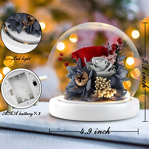 - [Real Roses Romantic Gifts]: Fresh roses gifts for women, Special preservation techniques ensure that each rose will remain in its original state for 3-5 years. it’s normal and natural for our preserved roses flowers to vary in their sizes, shapes, or colors since our arrangements are made from real roses and flowers and each rose and flower is unique. Unique floral arrangements idea, the combination of red rose and gray rose represents warm and elegant luxury.