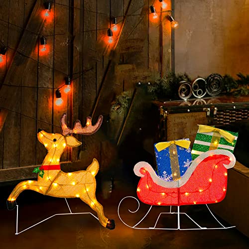 - 【A BIG HIT FOR CHRITSMAS】This indoor outdoor Christmas deer and Santa sled with decorative red bow-knot will add a whimsical look to your Christmas tree with beautifully designed Christmas outdoor decorations lawn.Placed it in outdoor yards & homes, give your neighbors and friends some surprises