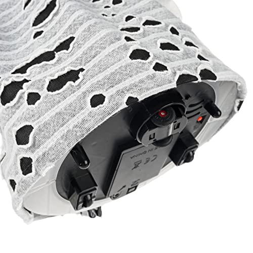 - LIGHT AND SOUND: Equipped with colorful lights and wheels, with a button activation that triggers flashing lights in 7 different colors while moving and emitting a scary roar, creating a spooky Halloween atmosphere. Requires three 1.5V AA batteries for operation (not included).