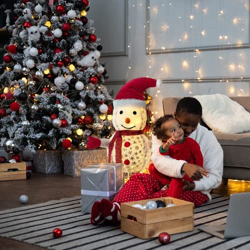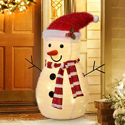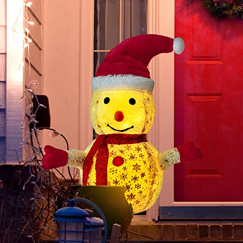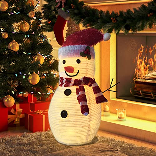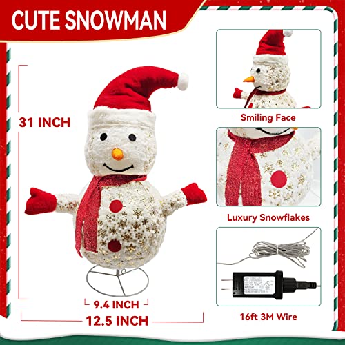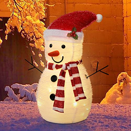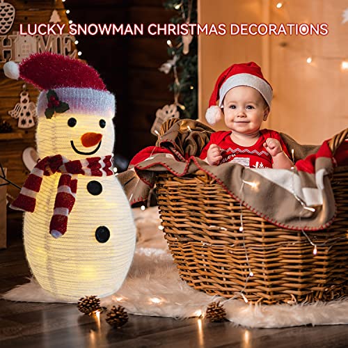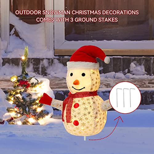 - Christmas Snowman Decorations: This Outdoor Christmas snowman decorations are build-in 25 Count LED lights, warm color light make it cute and attractive at night, which will definitely warm your winter nights, create a warm atmosphere in indoor or outdoor yard on Christmas holiday. The LED beads are durable and avoid the trouble of replacing the beads.
