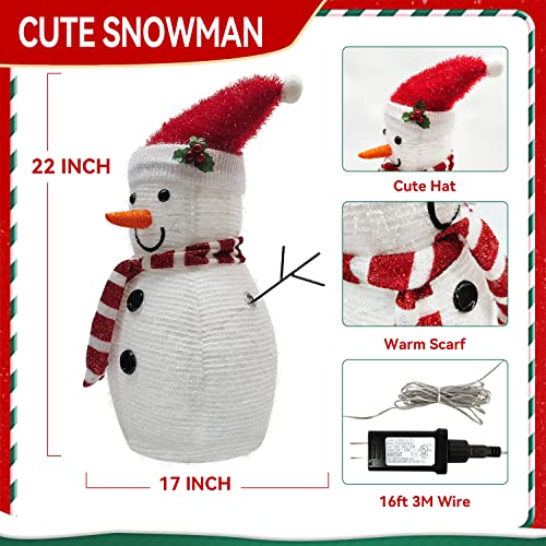 - Premium Quality: Our Christmas snowman yard decorations are made of a durable metal frame and covered in hand-sewn tinsel fabrics for a lovely look. The assembled dimension is 22" x 17", Suitable size for Christmas indoor home decoration or outside porch, Lawn, yard decoration.