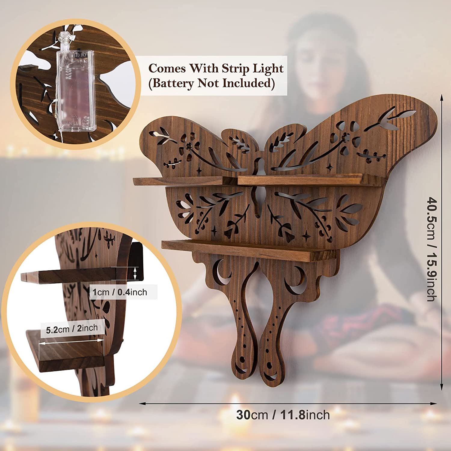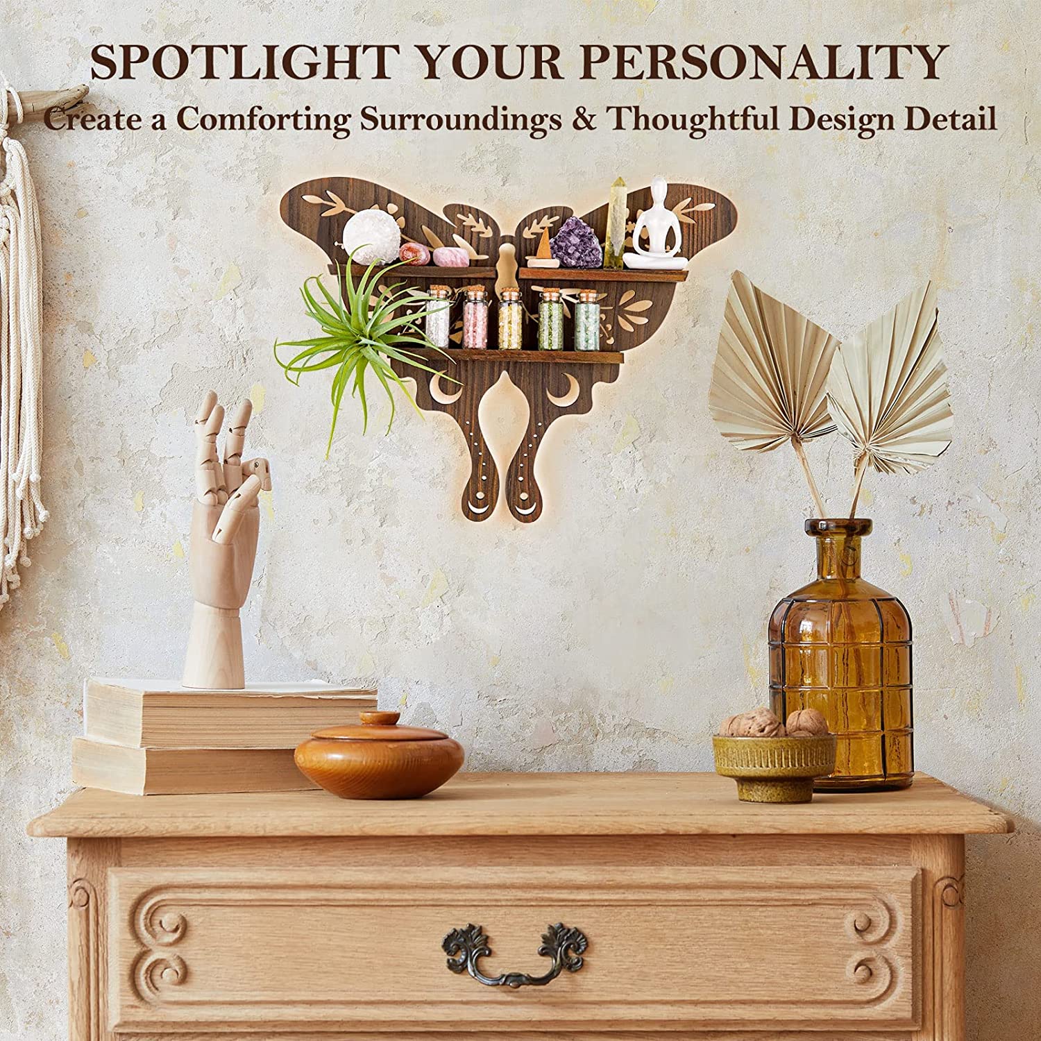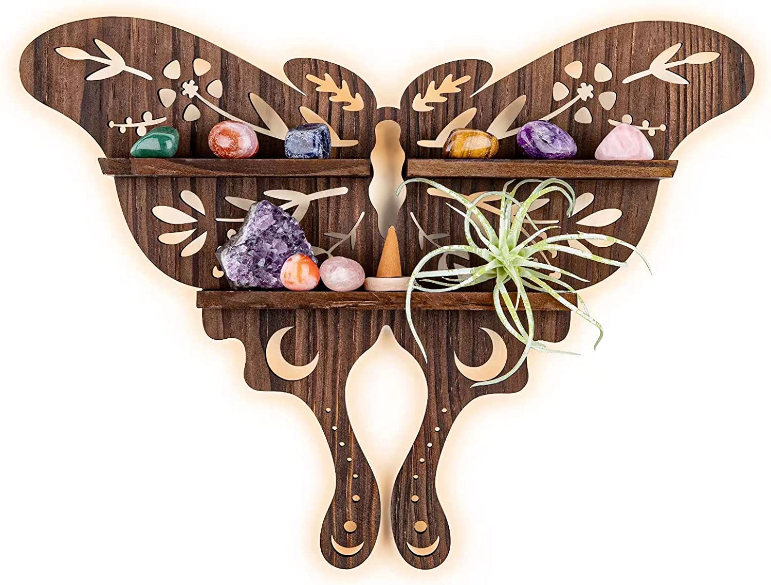 - CHARMING LUNA MOTH DESIGN: We are obsess about the gorgeous of natural and moon moth must be one of the magical creatures of the world. The shelf’s main body designed as a cute luna moth shape and features with moon and bontanical pattern. The Lunar Moth, which is seen as a symbol of spiritual transformation, increased consciousness and the pursuit of truth.