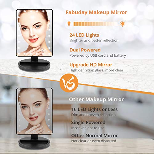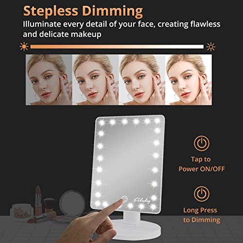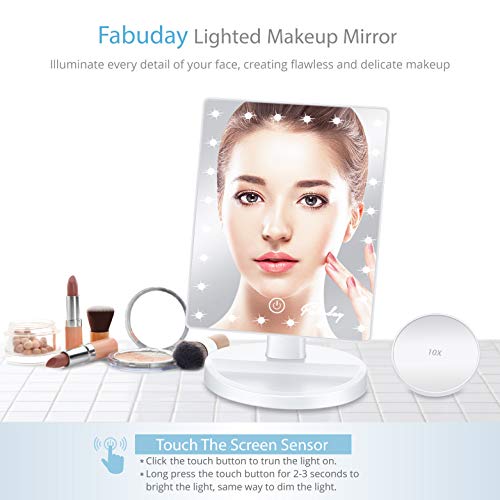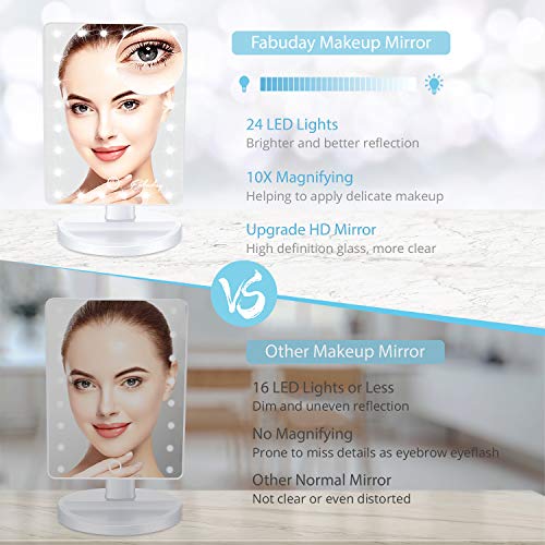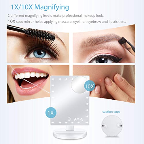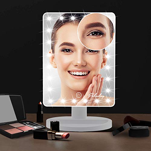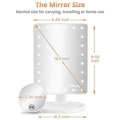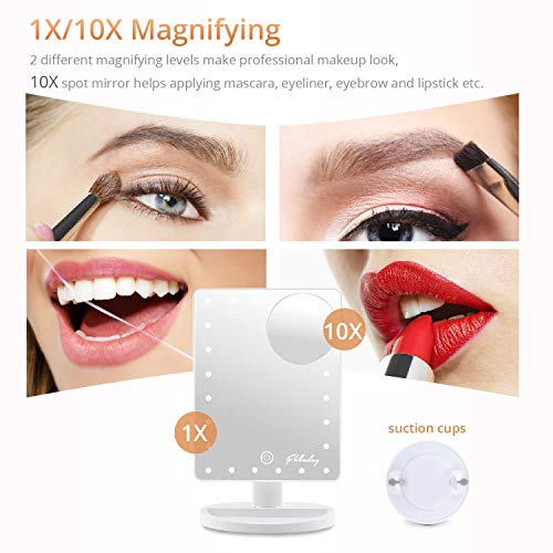 Makeup Mirror w/ Lights & 10X Magnifying Mirror - 24 LED Lighting Adjustable, Dual Power Supply, Touch Screen