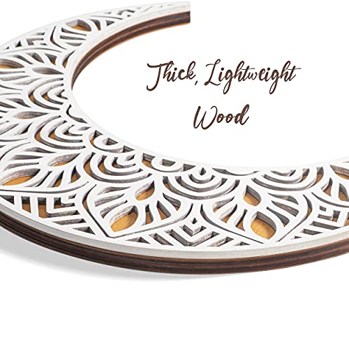 - Laser Cut, Not Laser Thin: Our beautiful moon decorations are intricately laser cut and branded with our logo for proof of authenticity. They are not the same as the flimsy wooden wall art ‘cutouts’ you’ve seen today. Symbolising growth, creativity, manifestation and fertility, our crescent art delivers spirituality in a harmonically pleasing way for any home decor.