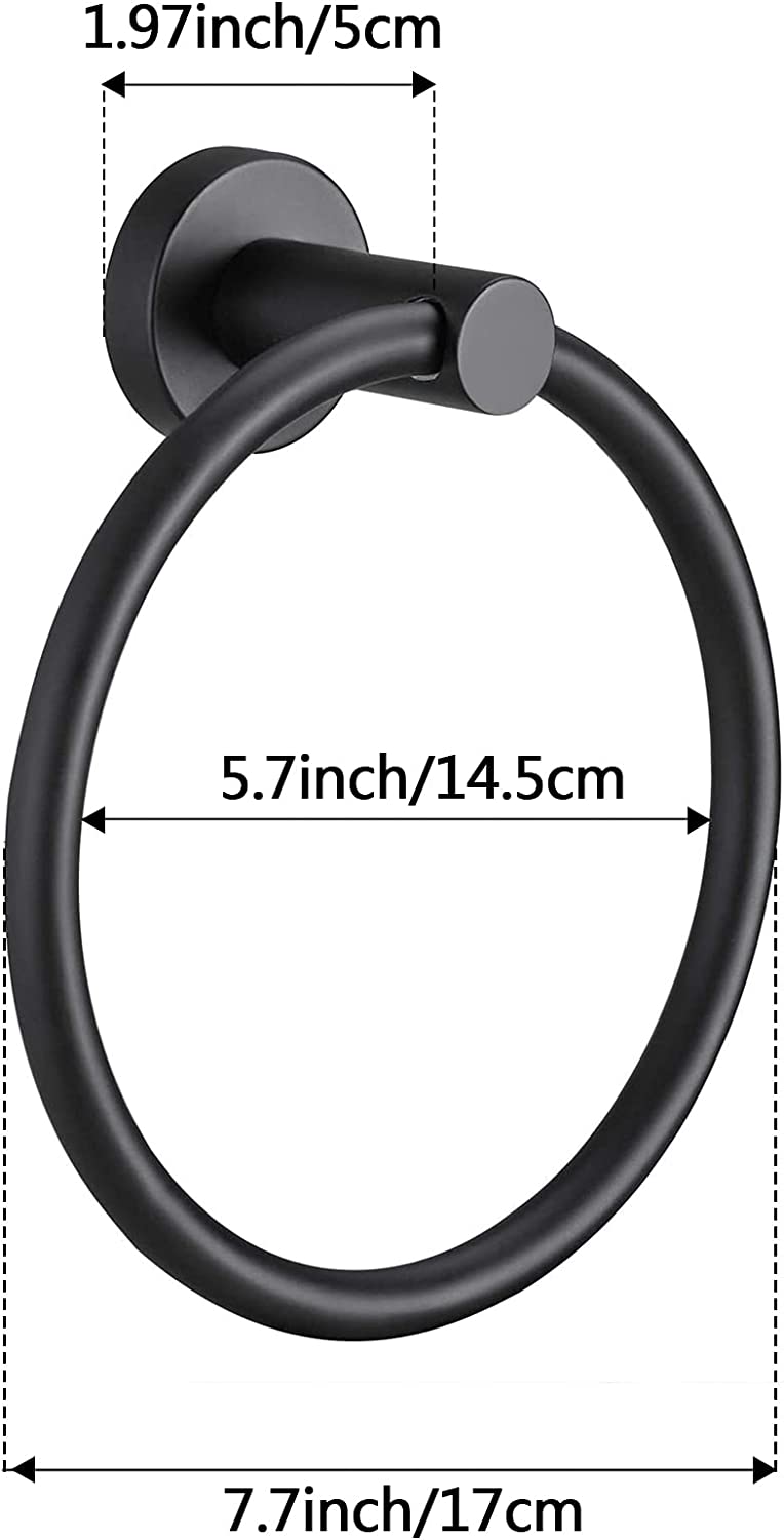 Matte Black Towel Ring for Bathroom 1 Pack, Kitchen Bath Towel Hangers Stainless Steel