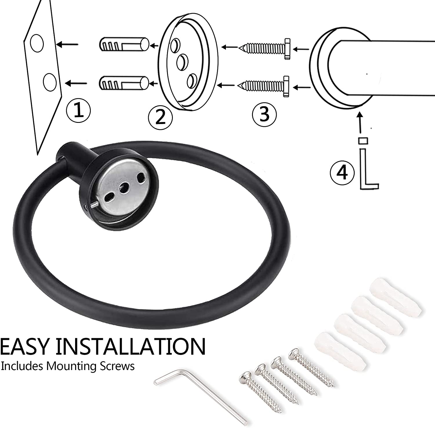 - This sturdy towel ring wall mount leaves enough space for damp towels to dry quickly instead of taking much space. These towel rings are ideal for bathroom, bedroom, guest room, kitchen, etc. Make your living space more simple and contemporary.