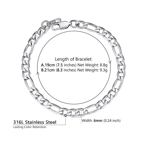 Men Bracelets Chain Wrist Bracelets 6mm 7.5inch Stainless Steel