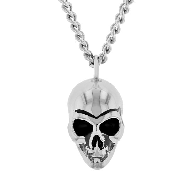Men’s Polished Stainless Steel Solid Human Skull Pendant Necklace