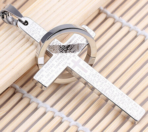 Men Stainless Steel Bible Lords Prayer Cross Pendant Charm Lucky Necklace-Silver