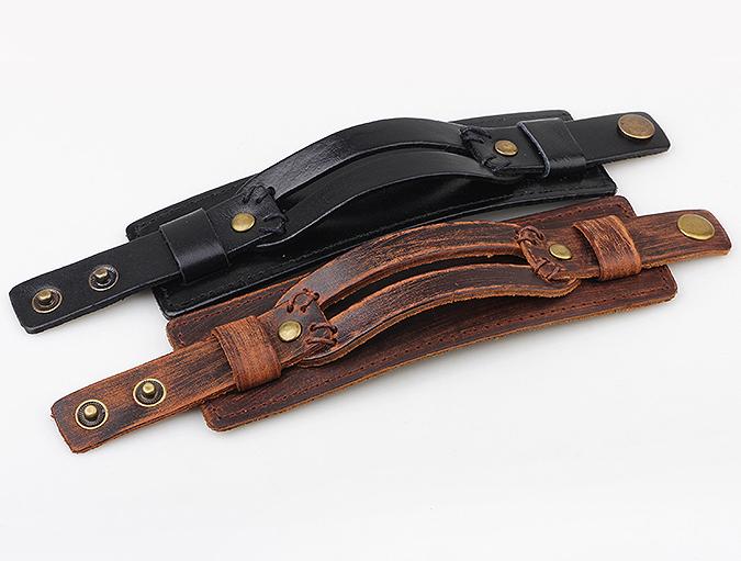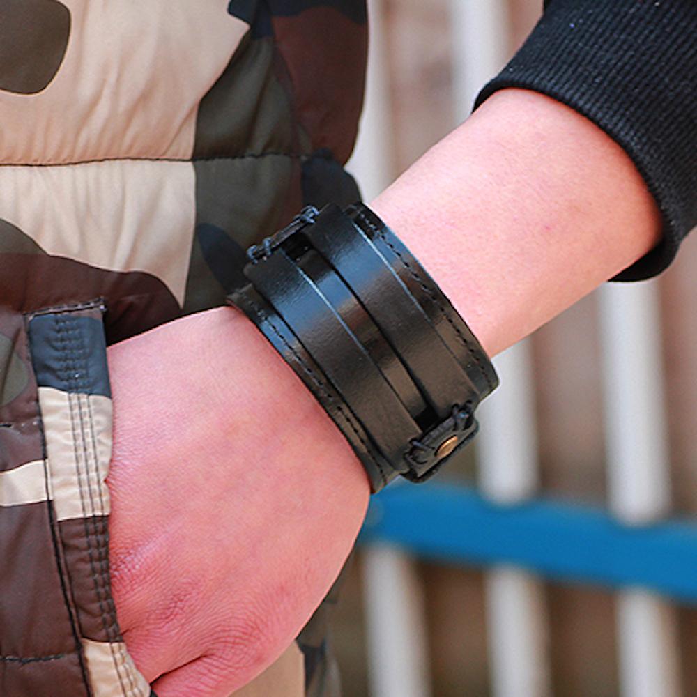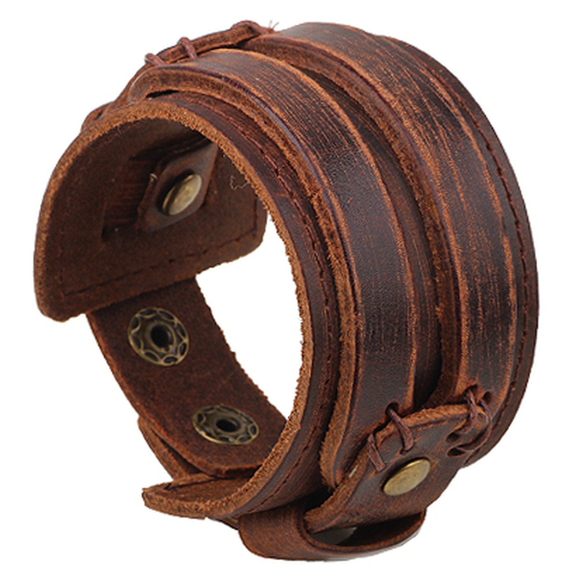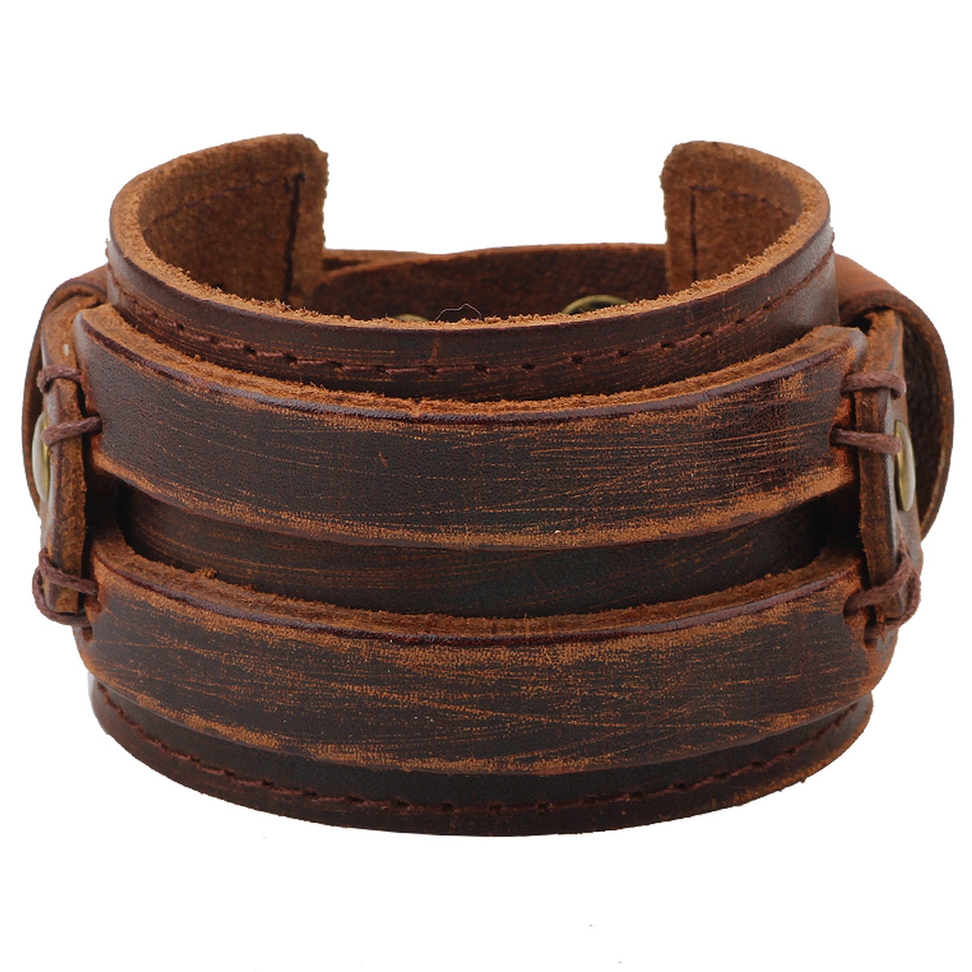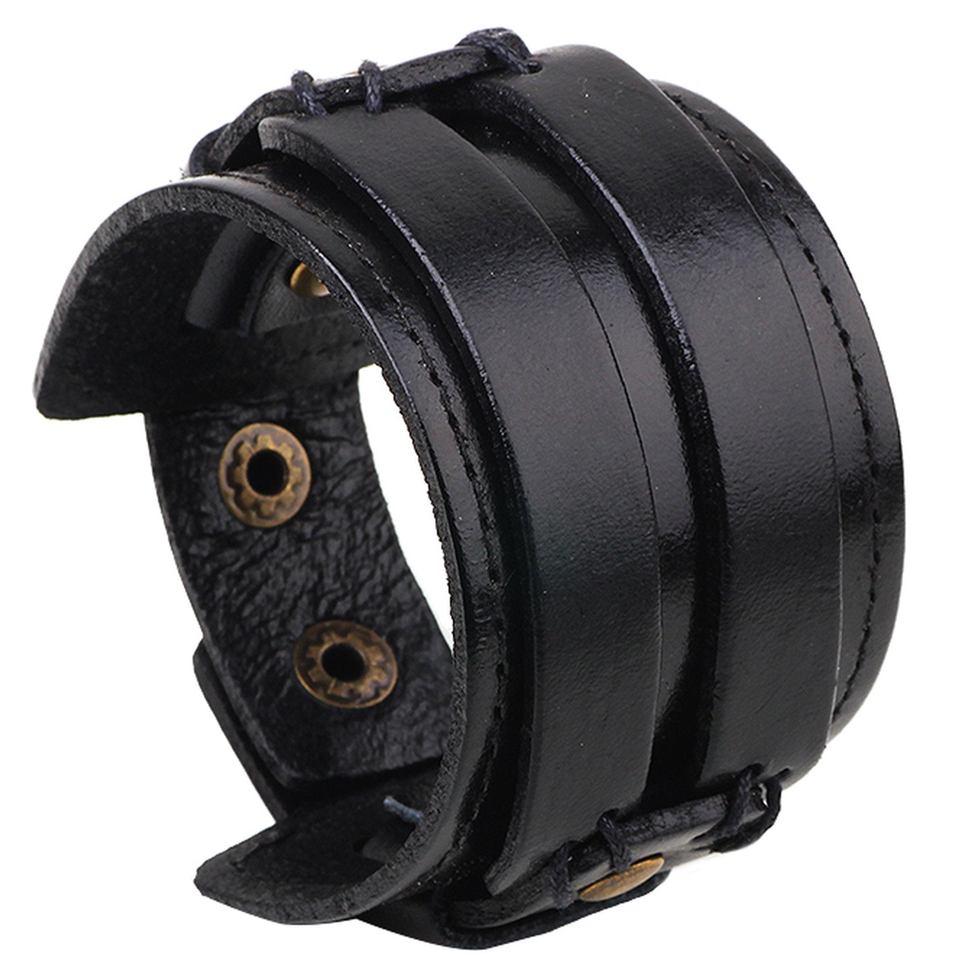 Men's Punk Rock Leather Wide Cuff Wristband Bracelet