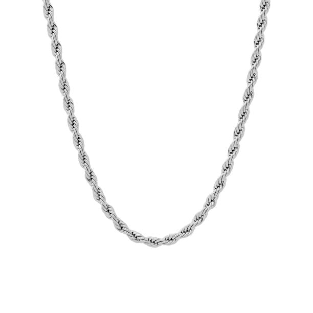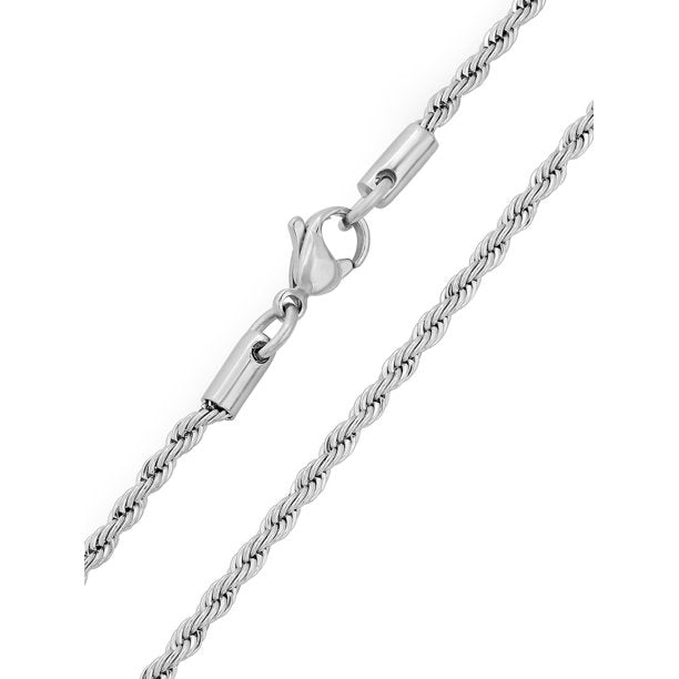Mens Silver-Tone Stainless Steel Rope Link Chain Necklace